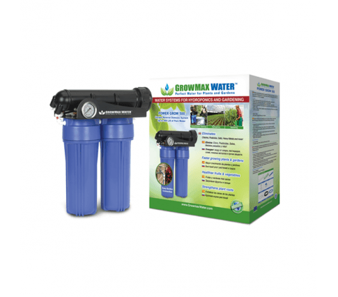 POWER GROW 500 Produces up to 20 L/h of pure water Reverse osmosis system optimized for gardening and hydroponic uses, up to 500 L/D of pure water. Eliminates up to 95% of all of salts and heavy metals. Also eliminates 99% of chlorine and   sediments down to 5 microns, immediately!